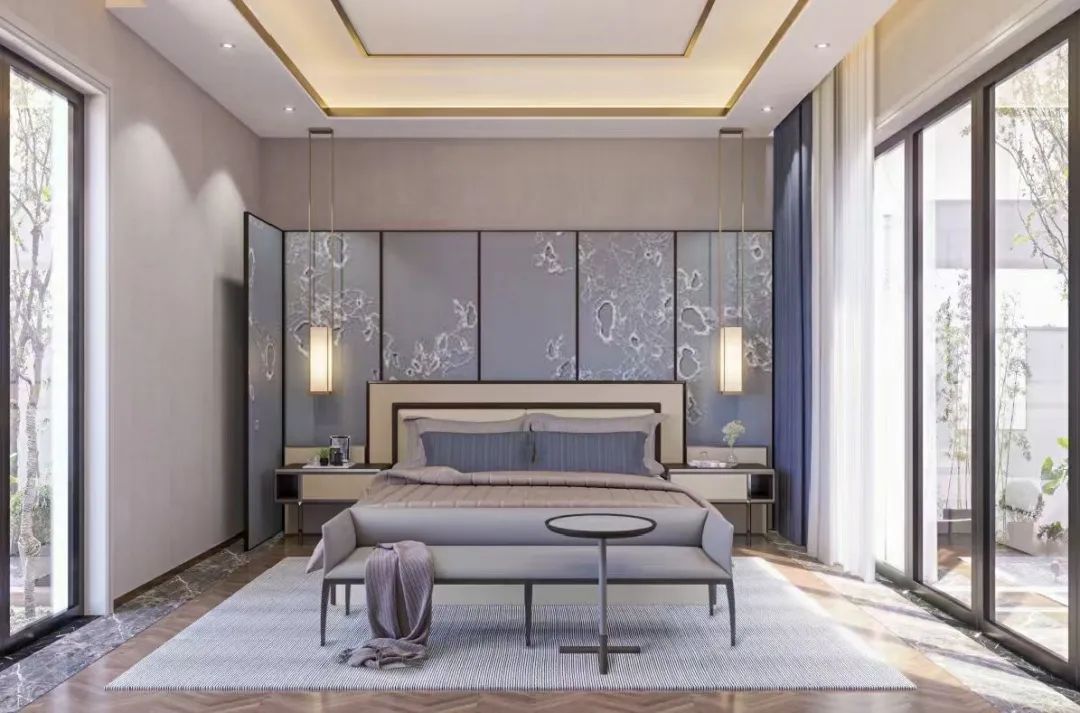 卧室的设计以极致的简约风格为基础,通过一些精致的软装元素,以及材质上的奢华来提升质感,细节处精心打磨,虽无夸张造型和丰富色彩的叠加,却处处体现出细腻、考究的空间格调。
