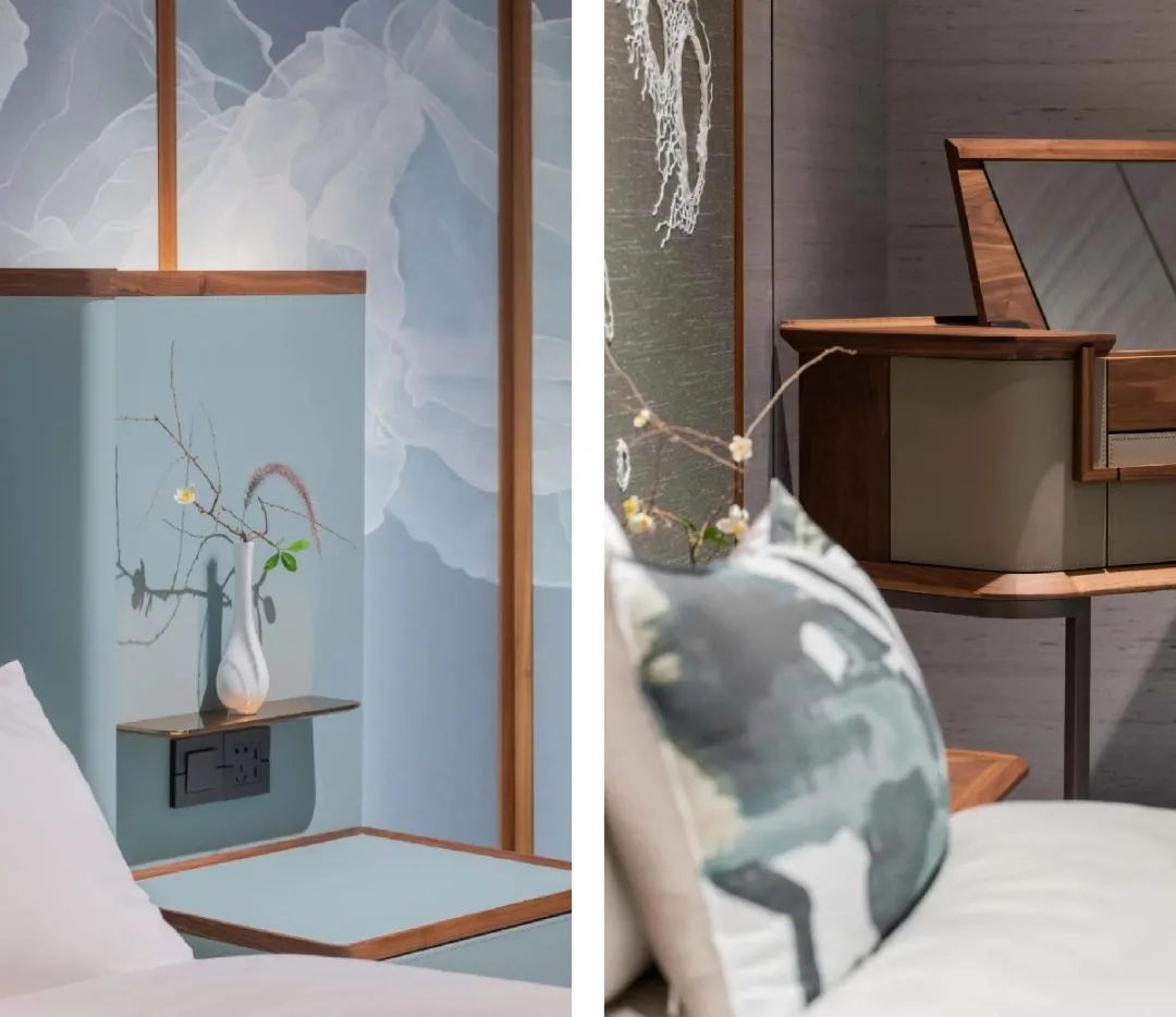 通过颜色的维度建立空间的联系在无声江南网页版中表现得十分明显,当明度适中的灰调融入清水蓝,糅合出明亮通透的质感,各个居室在配色上相互呼应,达到高度的统一。