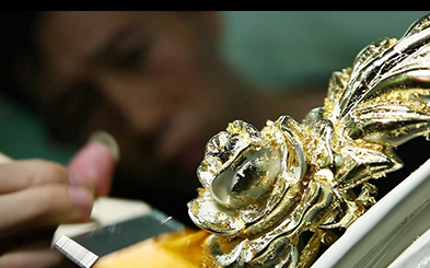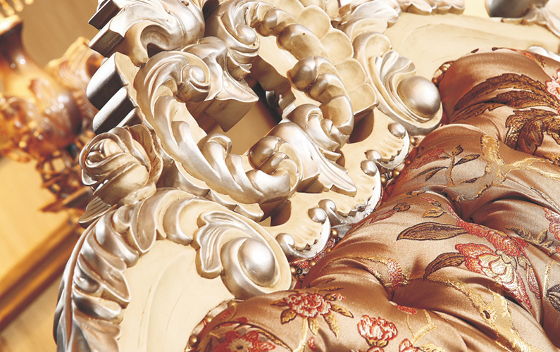 Frandiss(富兰帝斯)拥有泥雕、彩绘、镶水晶、打铜钉、手工雕花、拼花镶嵌工艺、贴金箔/银箔、手工缝线、手工贴皮等几十多种上百年历史的手工工艺,巧妙的运用到家具的制造中,以精益求精的“工匠精神”传承爵世家范。